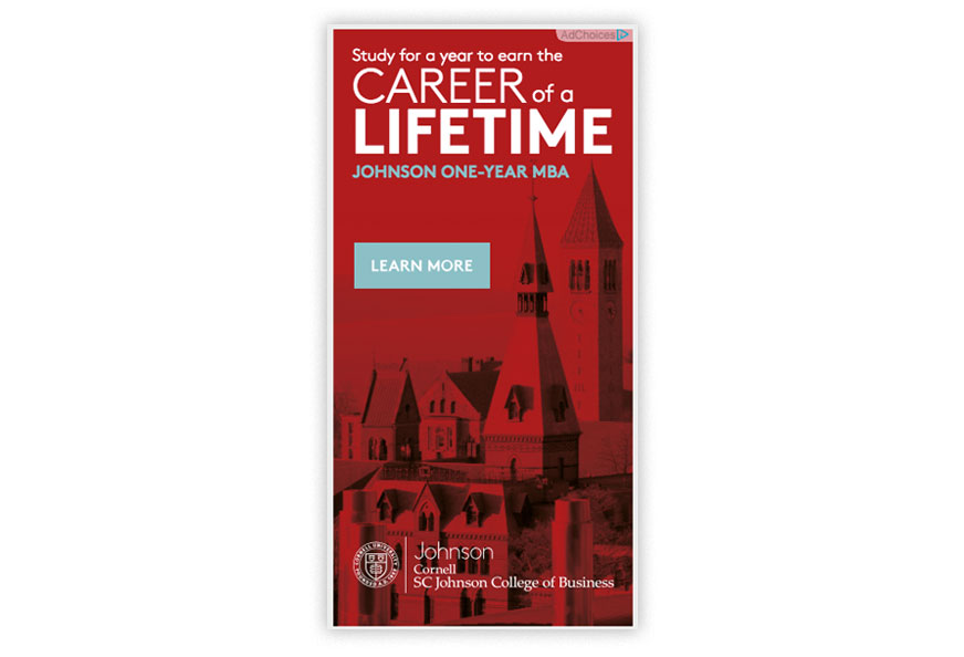 Managing dozens of media outlets, each with their own insertion orders and schedules, can get overwhelming. So can developing round after round of eblasts and display ads to keep enrollment churning. That’s why Cornell SC Johnson College of Business turned to Riger to help fill its applicant pipeline.