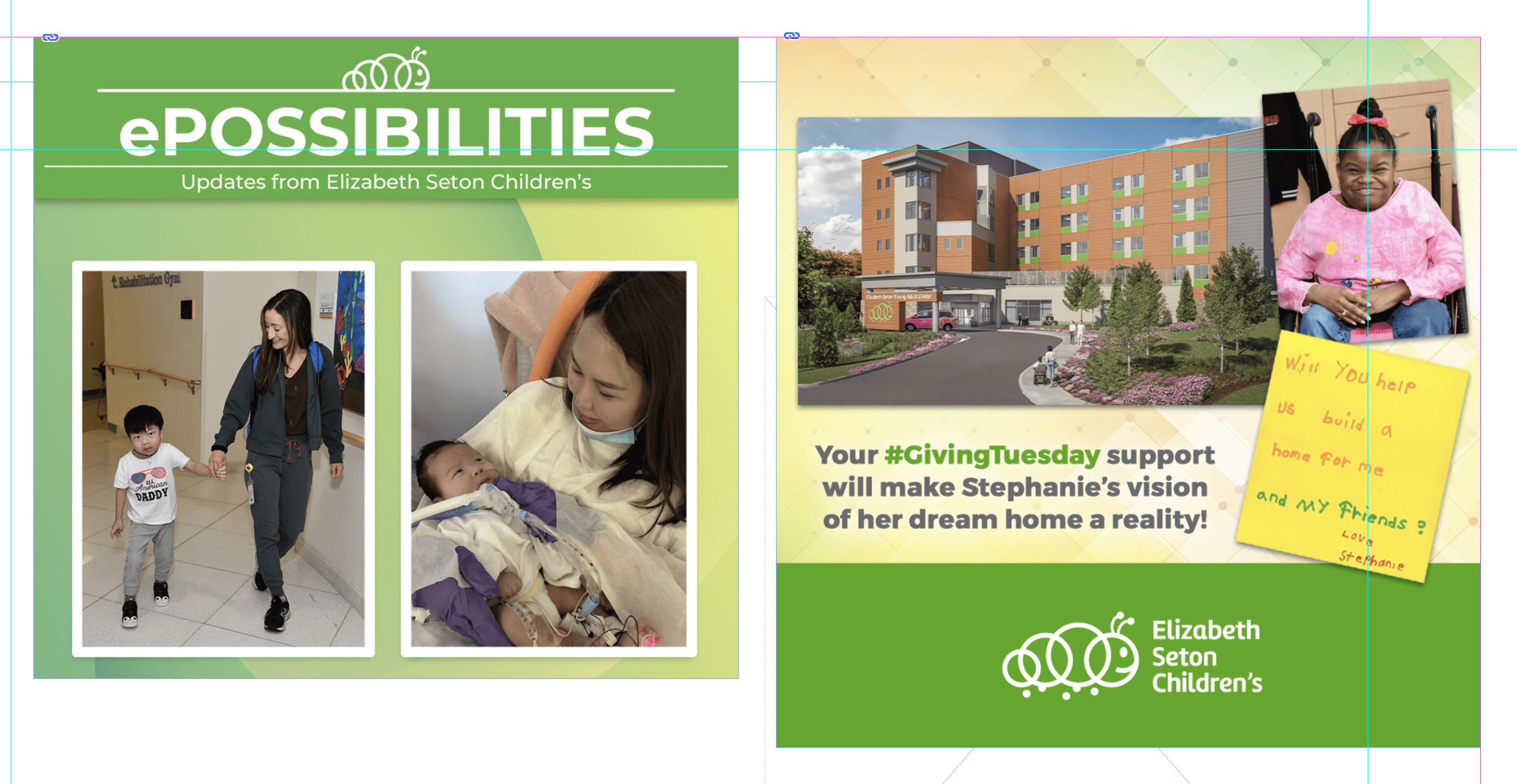In support of Elizabeth Seton Children’s, a downstate NY hospital that cares for children with medically complex conditions, Riger copyedited and designed social media graphics and eblasts to share news, promote events and extend holiday wishes to donors and the family members of current and potential patients.