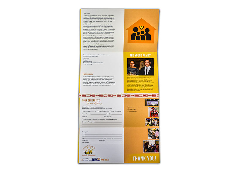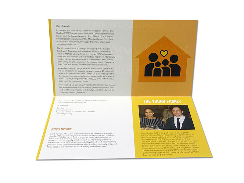 Riger created capital campaign materials in support of Pocono Services for Families and Children’s new Mountain Center. The theme and imagery asked potential donors to help each client family find the shelter, compassion, and brighter future they deserve.